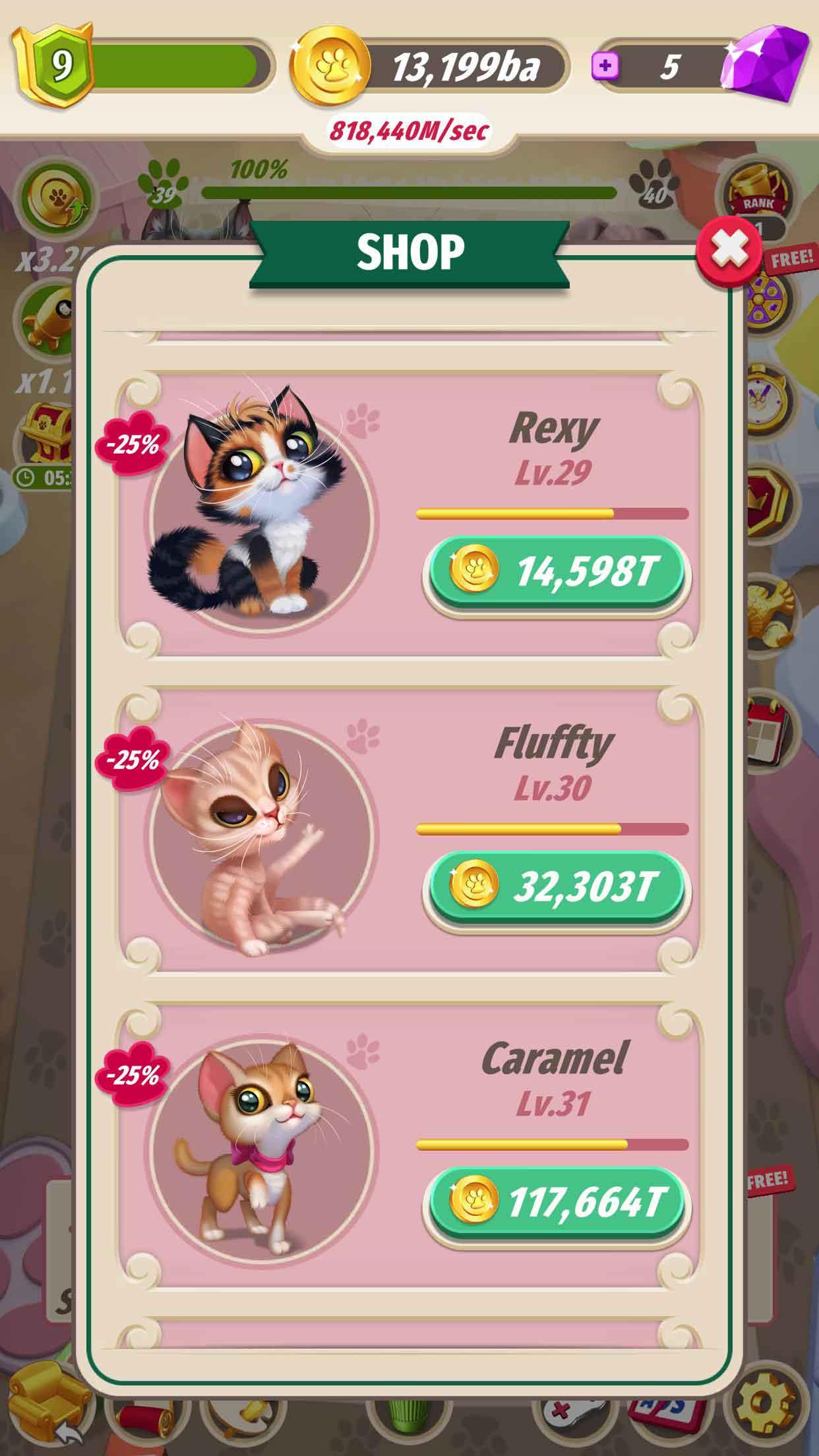 1、收集赏金,然后能够在商城购买小猫咪,在商城解锁更多的小猫咪吧;