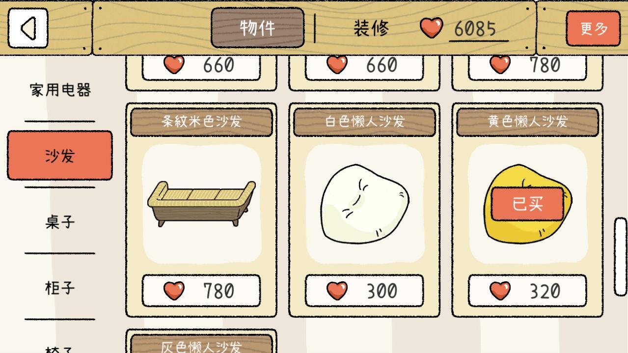 3、萌宅物语游戏各种不同的家具可以尽情的去购买解锁,装饰自己的甜蜜小家;