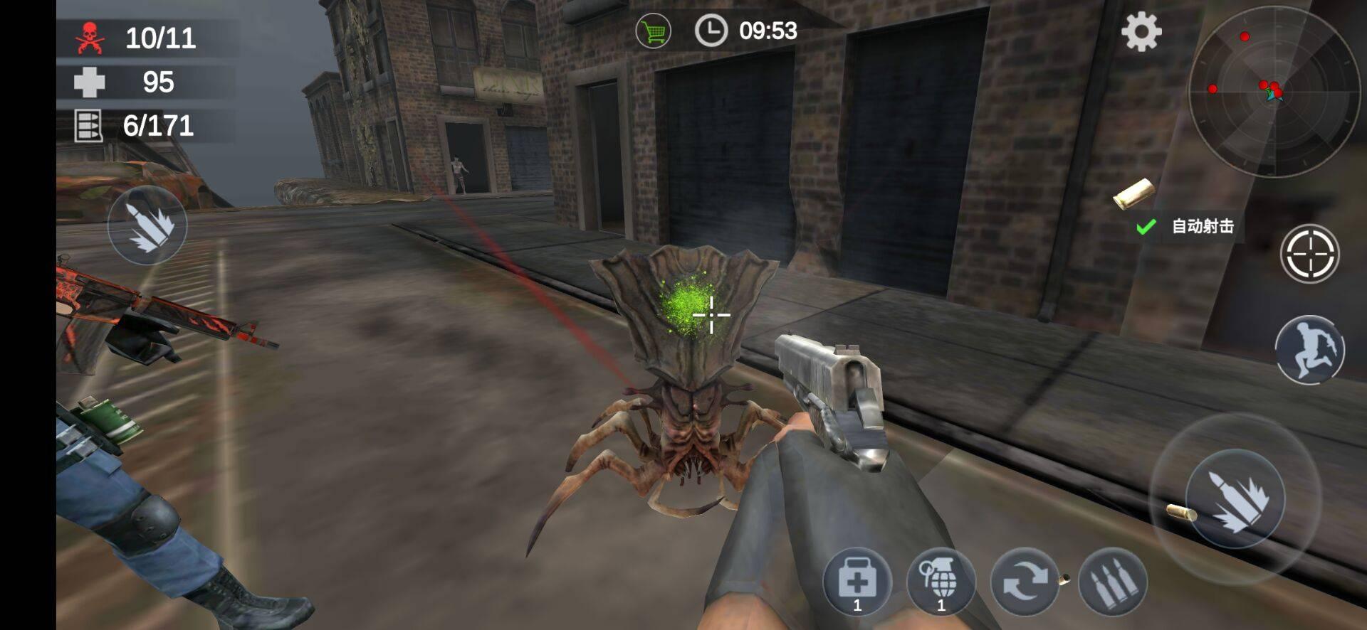 2、进度的僵尸题材手游,游戏中的僵尸与其他游戏一样,只有打头才会死亡。