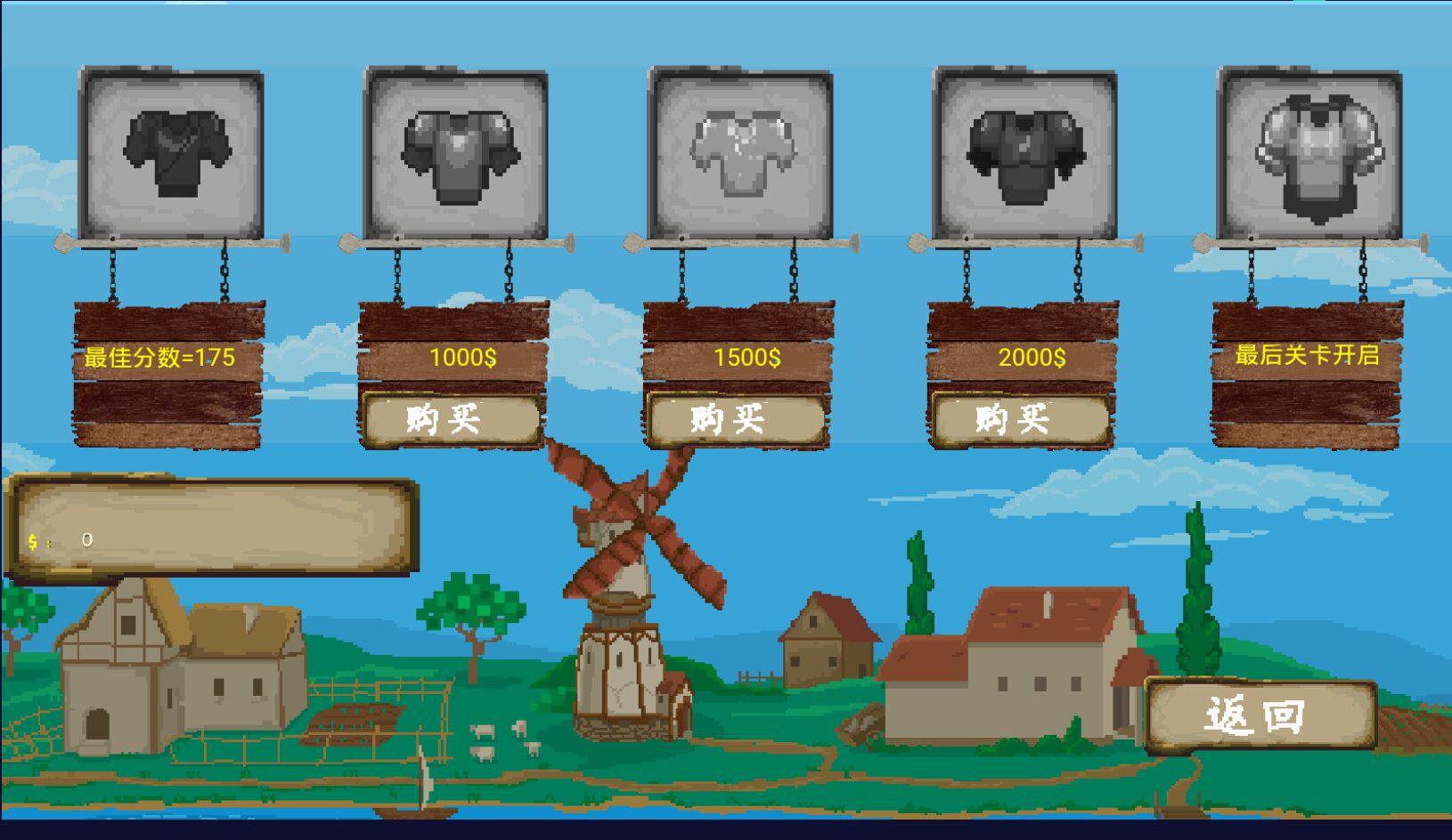 玩家每一次通过都可以获得分数还有金币,可以使用金币购盔甲,让自己更加厉害;