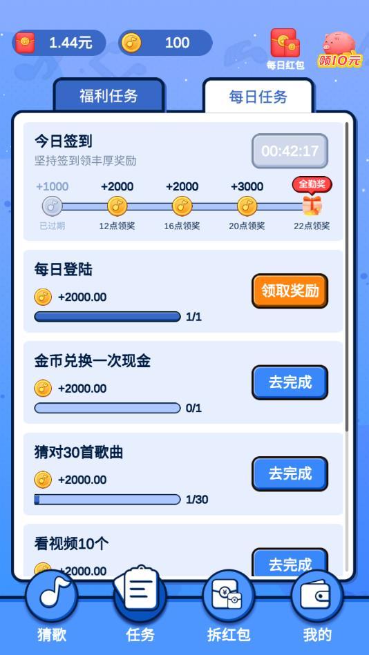 玩家在游戏中经过猜歌可以获得积分,还有红包任务等途径赢红包。