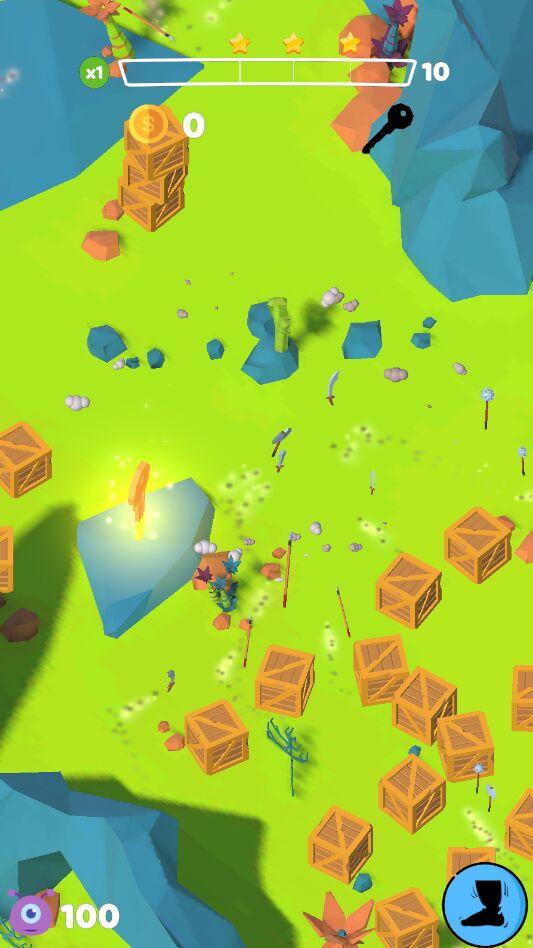 游戏中,玩家可以控制两个巨大的脚在地面上乱扔并破坏地面上的所有东西。