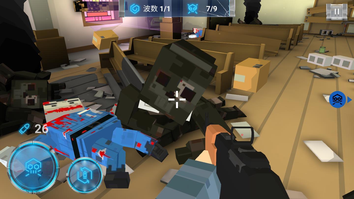 末日求生僵尸来袭让你体验不一样的像素画风的末日生存玩法,以滑动的方式进行角色方向的控制,轻松点击即可进行射击操作,非常有趣且具有创新的方块人形象,支持进行多样枪支的购买,支持进行枪支的升级操作。