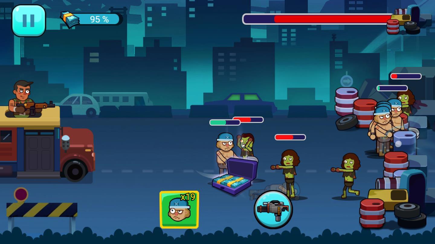 冲出丧尸镇以丧尸降临的末世为游戏背景,在满是丧尸的世界中,只有不断进行武器的收集、幸存者的招募等方式,才能够不断进行己方战斗力的加强,不断进行丧尸的射杀,进行金币的获得,金币可以用来解锁更多的士兵以及车辆。