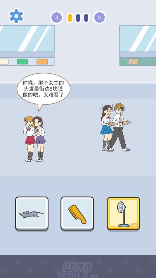 我的爱情太难了是个以非常精彩校园恋爱为游戏背景,在最恋爱的道路上,你会遇到各种各样的难题,每一难题能够解决问题的方式,都是不同的,游戏画面非常简洁有趣,游戏关卡是非常丰富,每一关卡你遇到问题都是不同的。