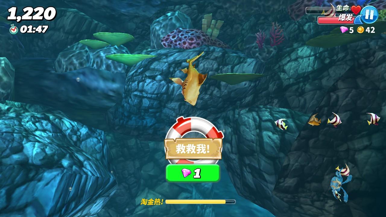 玩家需要及时购买新的鲨鱼才能有资格前往更加凶险的水域,否则就只能一直待在小水潭里面;