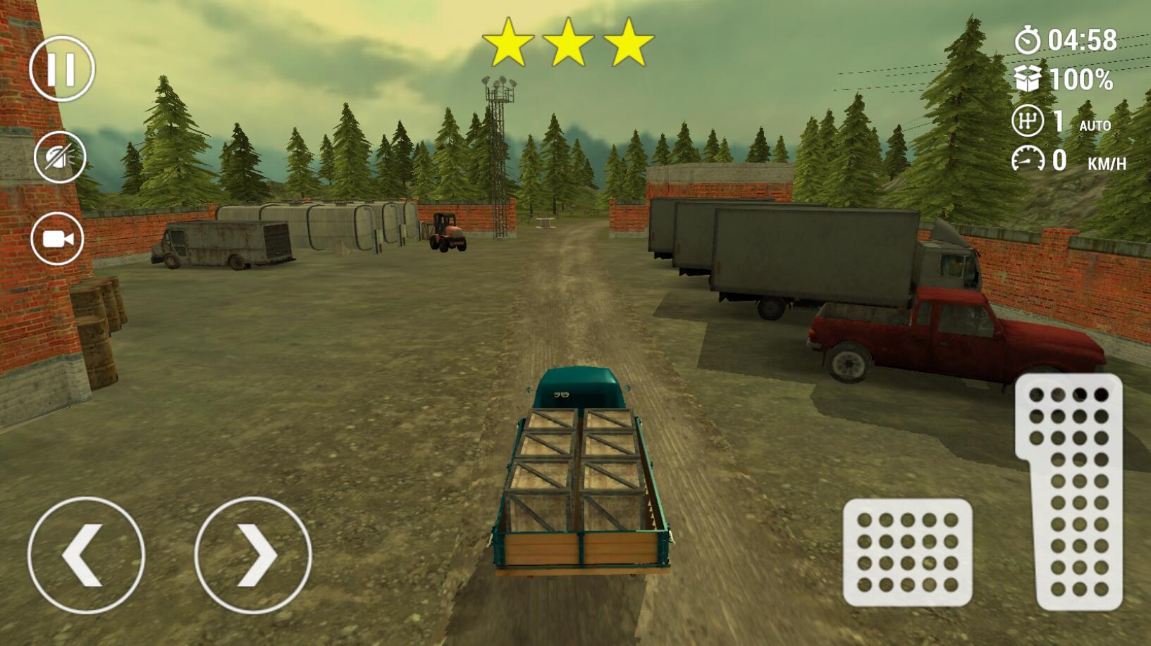 越野卡车司机,这是一个农村的院落,里面有一辆卡车,卡车的上面堆放着很多的箱子,玩家需要在时间规定内将这些货物送到指定的位置,不过因为路途较远,且一路上弯弯曲曲的,玩家在驾驶的时候就需要注意一点安全,以防出现什么交通事故。