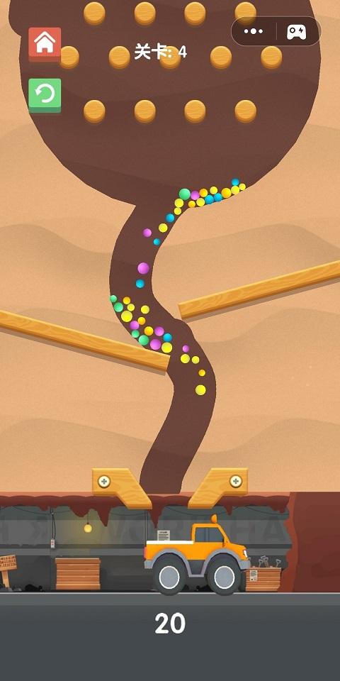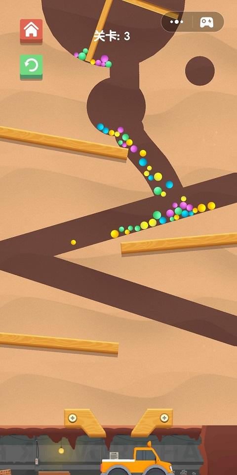 成功收集到指定数量的球球到达下方的小汽车,即可成功闯关啦!