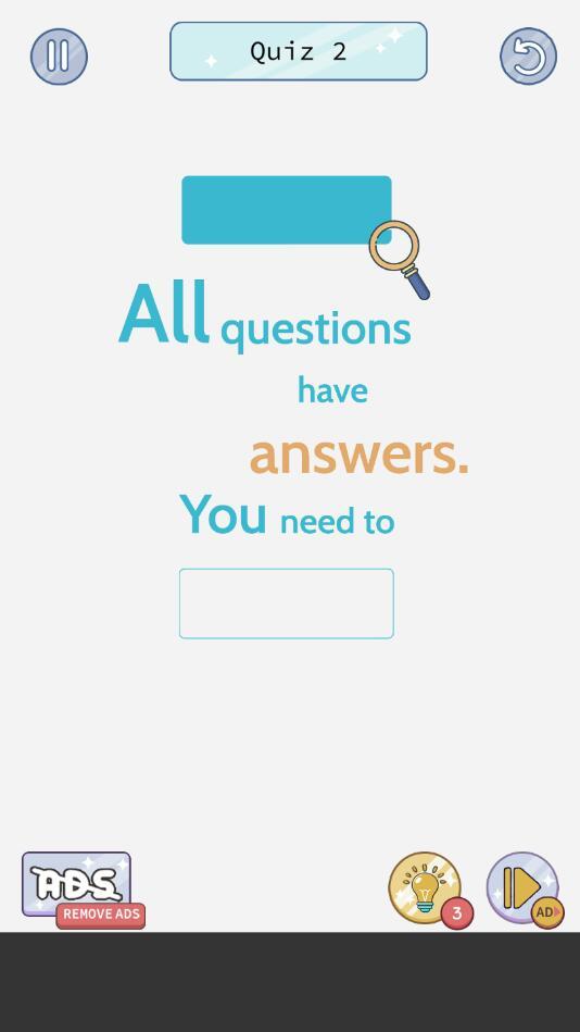每个关卡中的问题都不一样,您可以选择提示来更加快速的通关;