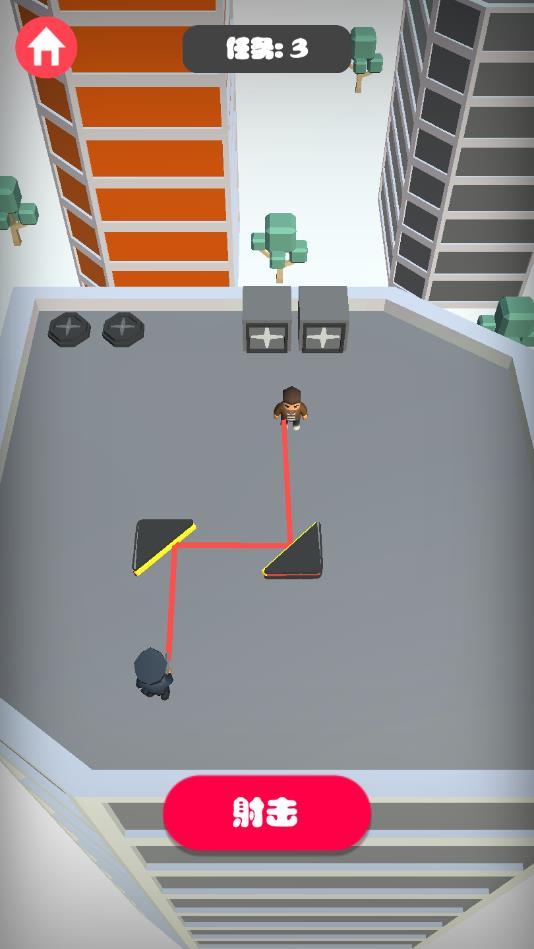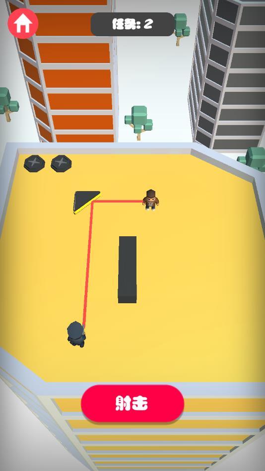 瞄准射击感受不一样具有创新的射击玩法,你需要利用关卡中的道具,进行子弹的弹射,从而成功进行敌人的射杀,游戏的布局每一关都是不一样的,游戏任务是非常丰富的,游戏关卡难度也是不断进行提升,每一关的任务目标数量不一定是相同的。