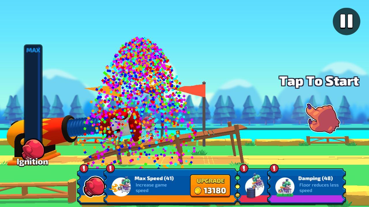 游戏中的目标很简单:在合适的时机点击屏幕发射加农炮,将角色尽可能击打得更远。