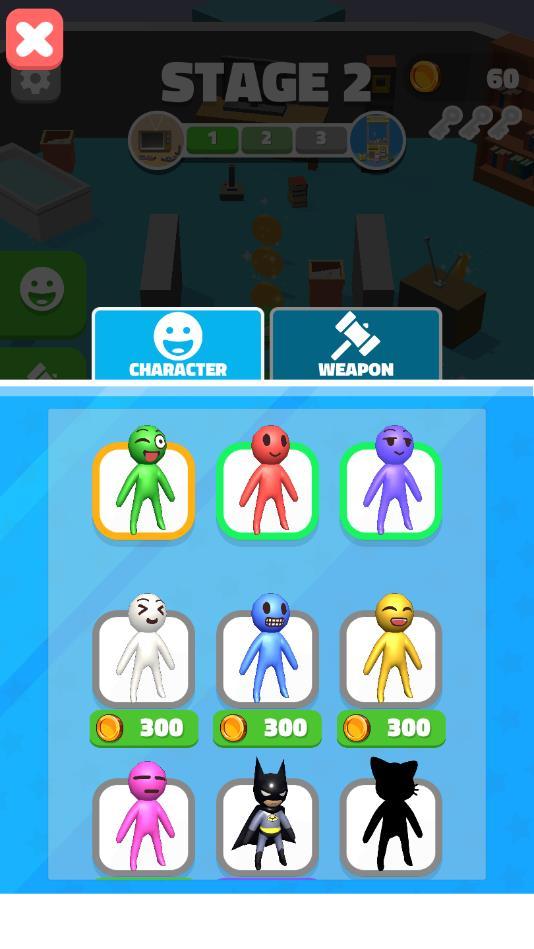 轻松即可解锁多个游戏人物形象,点击即可进行人物形象的使用,还有多样的锤子的供你来选择解锁,轻松就可以进行游戏的开始。
