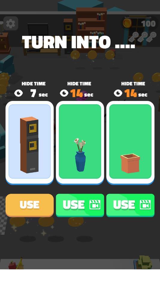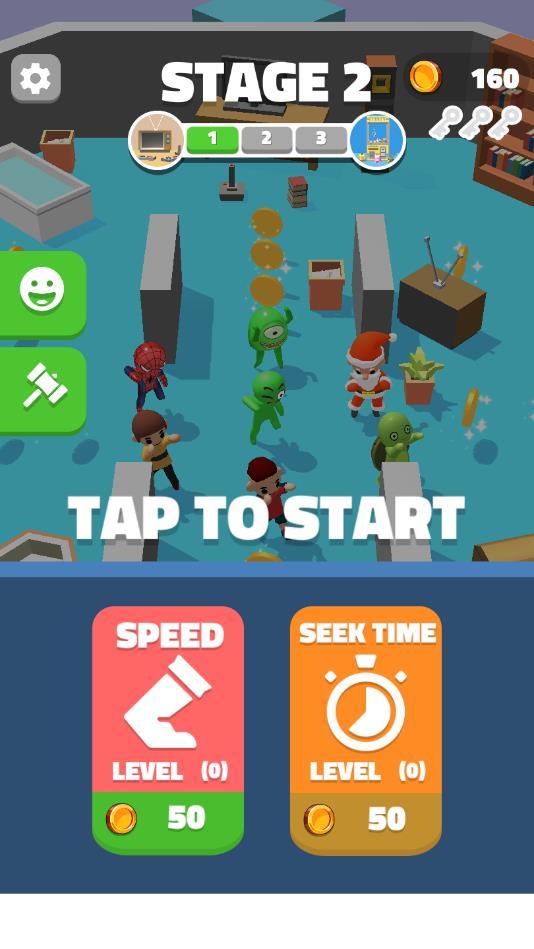 可爱简约的人物造型加上多个场景的互动内容,你还可以变成动物跟物体来隐藏自己,增加了更多的趣味性。
