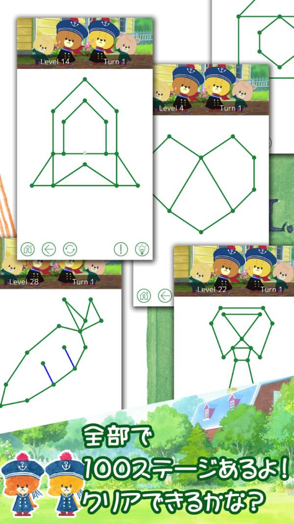 一笔画游戏是一款很适合儿童玩的益智游戏,这款游戏有着卡通的风格和欢乐的音效,玩家只需要对屏幕上出现的图案进行一笔画就可以了,需要您动脑思考,怎么才能一笔画完,一共有100个关卡可以让玩家来挑战,通关之后还会有星级评定哦;