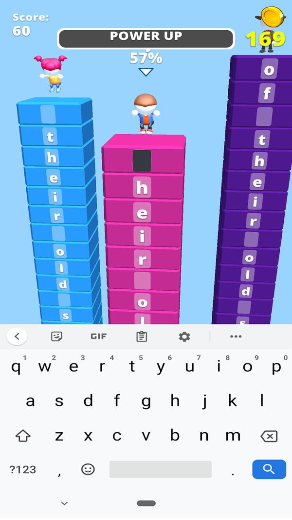 玩家需要不断的准确的敲击出字母塔上的字母才能不断的削减层数