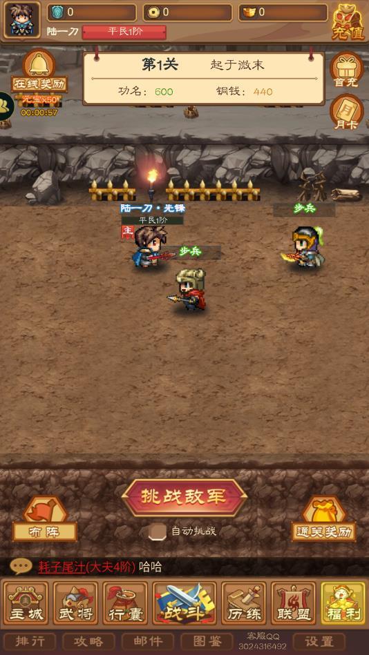支持进行放置挂机玩法,非常自由的战斗玩法,轻松就可以进行铜钱、功名等的获得,非常复古的游戏画面,轻松就可以进行敌军的挑战。