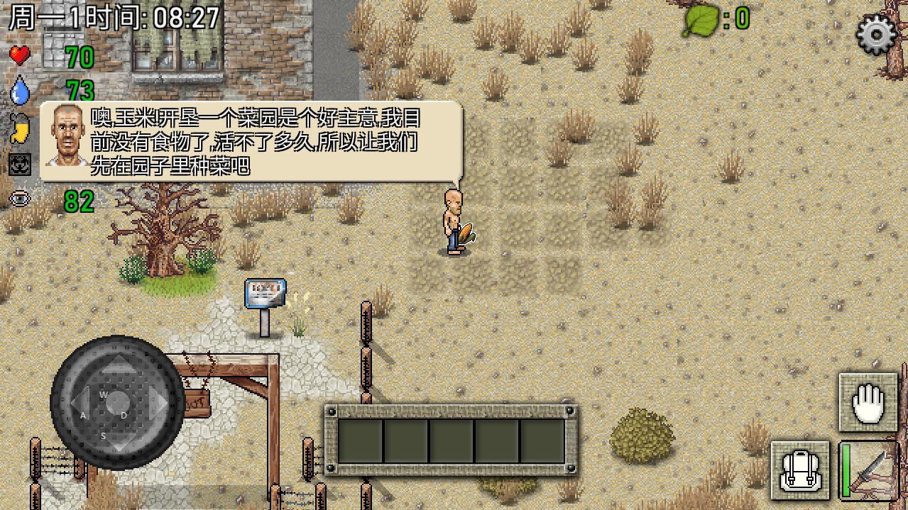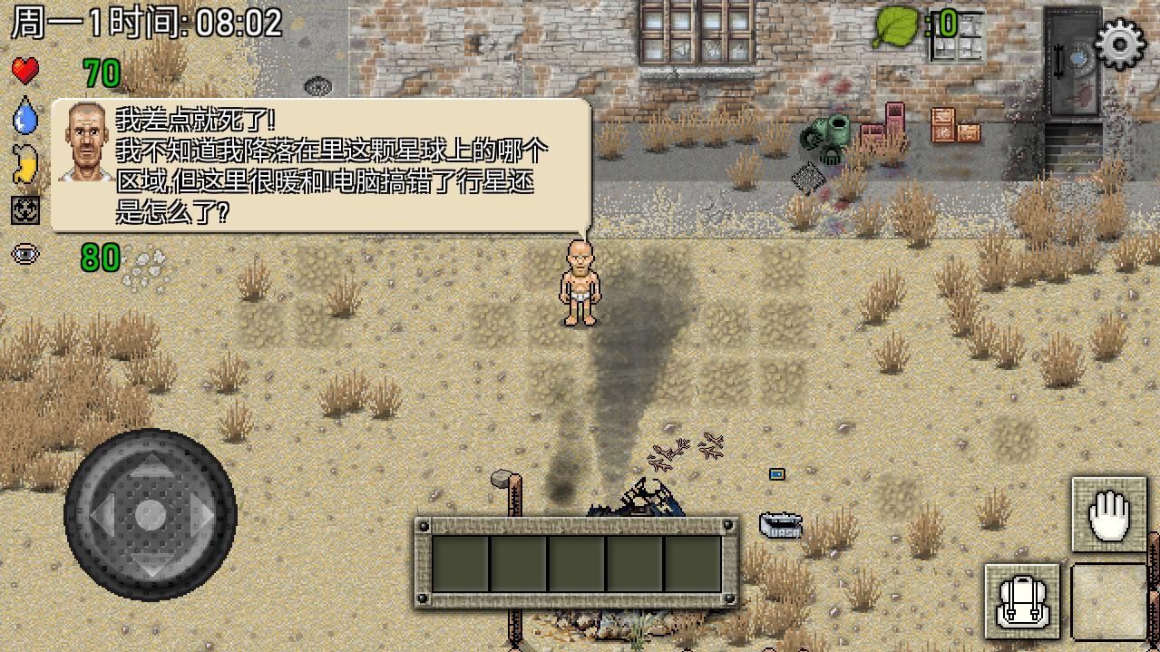 3、画面复古,玩法自由,没有任务限制,没有时间限制,但是你要随时注意自己的身体状态。