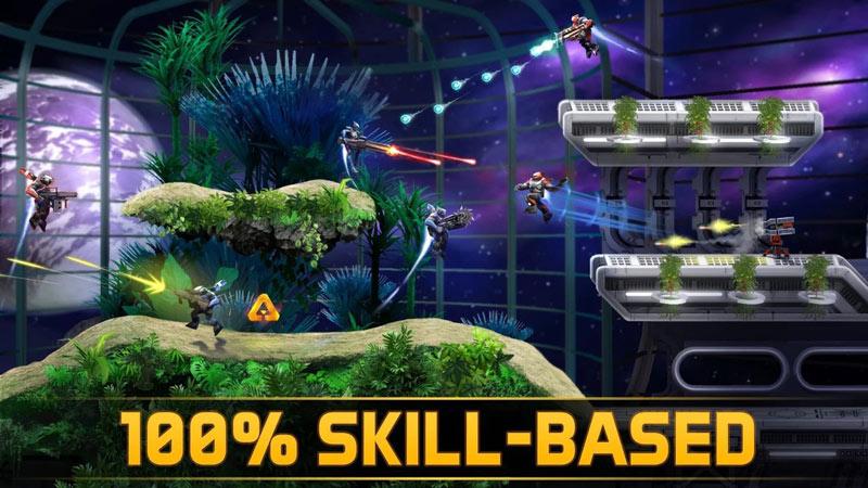 2、空中魂斗罗的玩法,玩家可以随意找到落脚点,陆战也精彩。