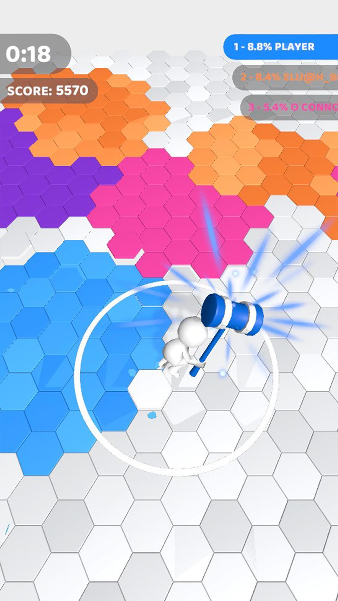 锤子这种东西总是能够成为游戏中的道具,在这款玩个锤子大作战的游戏中你将能够成为一个拿着锤子到处去战斗的角色,你将能够通过简单的攻击方式来击打地面,你的目的就是让这些地面有更多你的锤子的颜色,在对战之中,当一个玩家的颜色最多就能够获得胜利,你能够通过再次捶打来消除其他玩家的颜色,非常有趣。