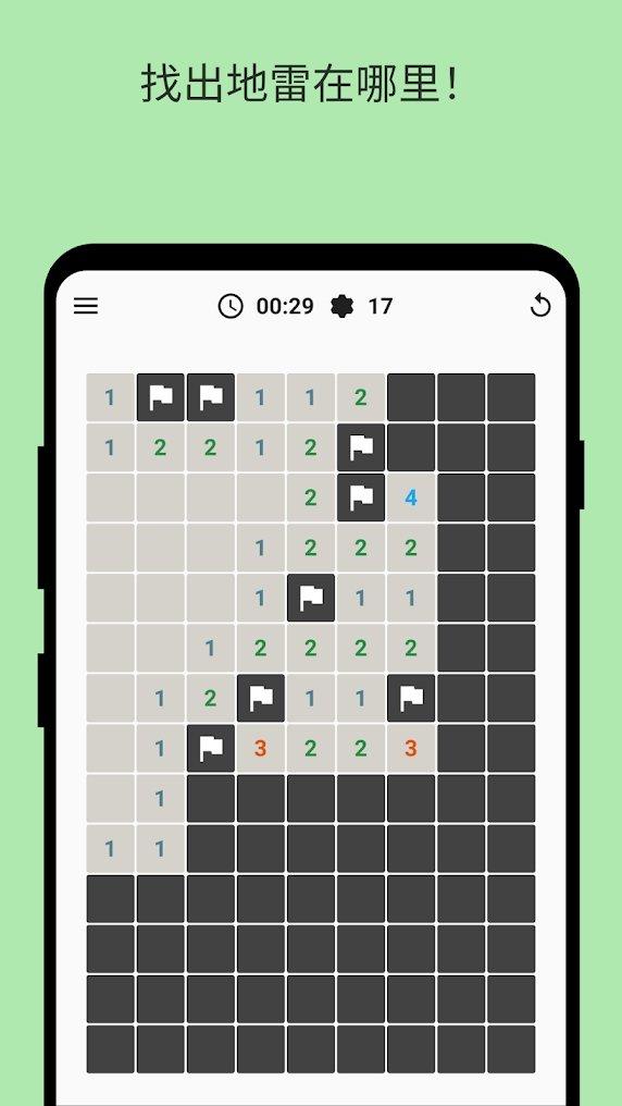 反雷扫雷免广告获得奖励版是一款经典休闲闯关类型的游戏,在游戏中玩家将会体验到最经典的扫雷玩法,通过各种点击,解开各种黑色方块,每个黑色方块会有三个不同的结果,包括空白,数字和地雷,玩家需要做就是根据已解开的数字,避开各种隐藏的地牢,给玩家极强的游戏体验。