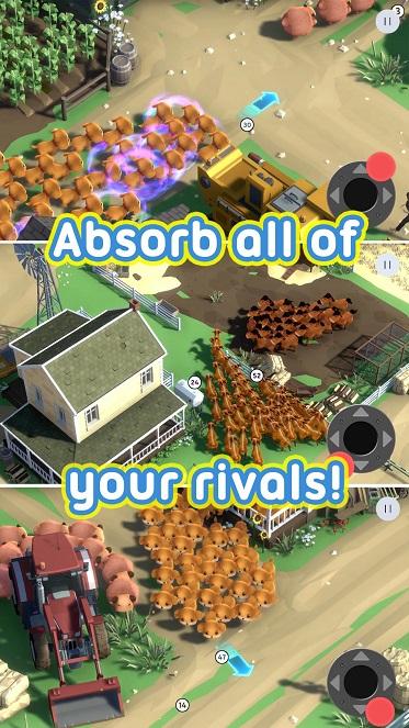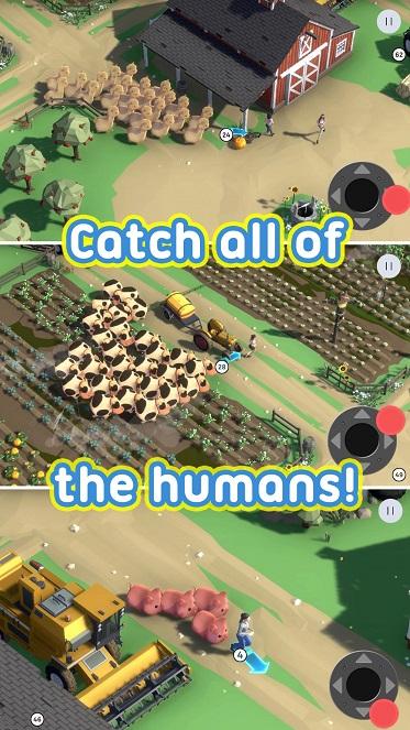 丰富有趣的游戏体验,游戏玩起来是相当的有趣的,控制你的动物在农场中闲逛,撞到那些想捉住你们的人,帮助更多的伙伴摆脱束缚,冲鸭。