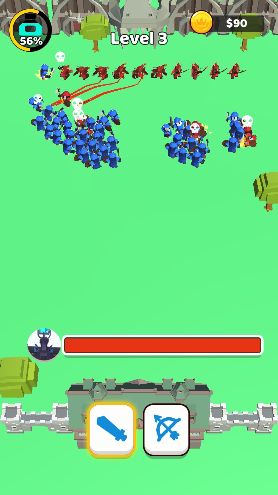 使用突击兵种攻击敌人的射手,用坦克兵种抵挡射手的弓箭,并保护我方弓箭手攻击;
