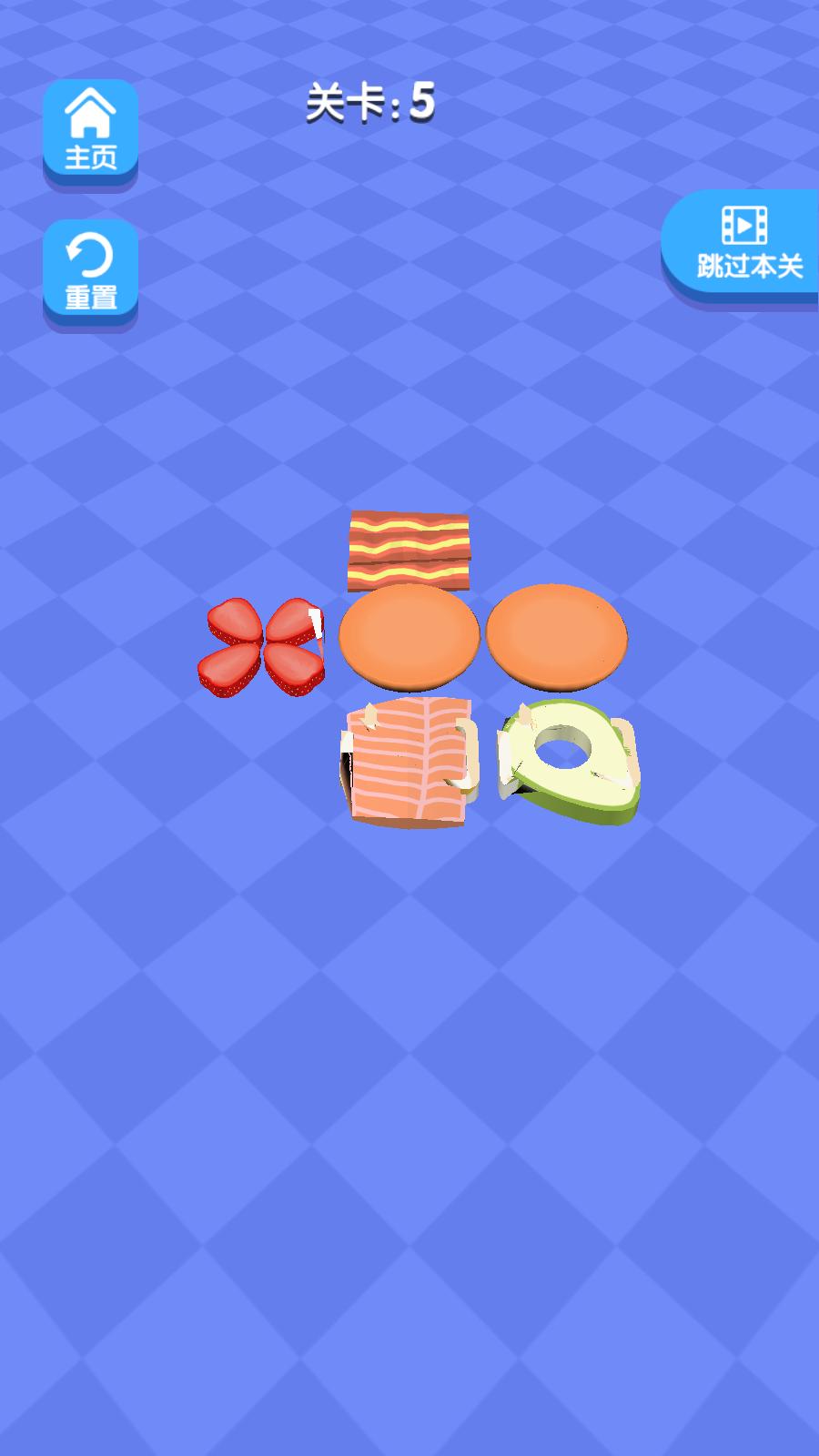 休闲益智美食叠叠乐叠高高单机游戏,按照不同的方案进行食材的折叠;