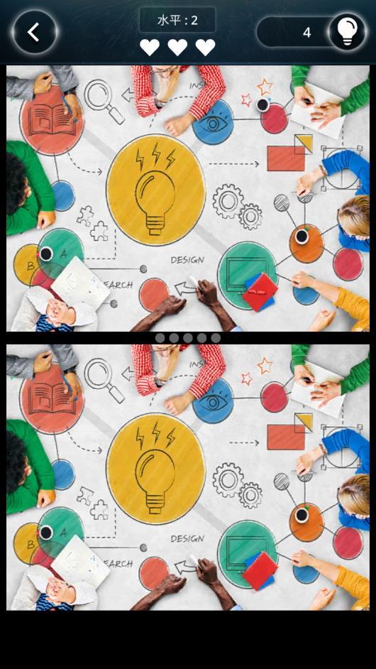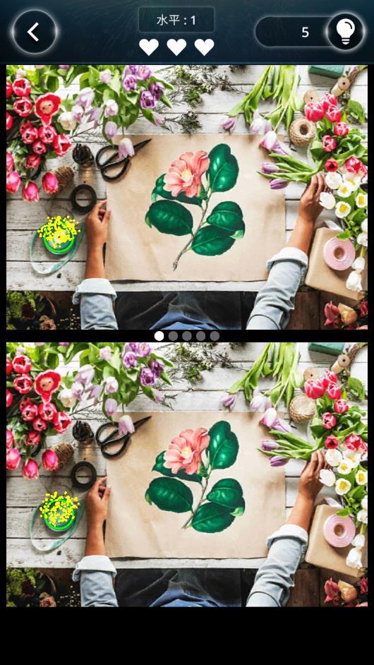 找到差异游戏画面非常简洁且美观,经典的找茬游戏玩法,多个关卡供你自由进行,每一个关卡都是有五处不同,关卡中是没有时间限制,让你可以轻松进行找不同操作,你需要关注每一个细节之处,才能够更好的闯关成功。