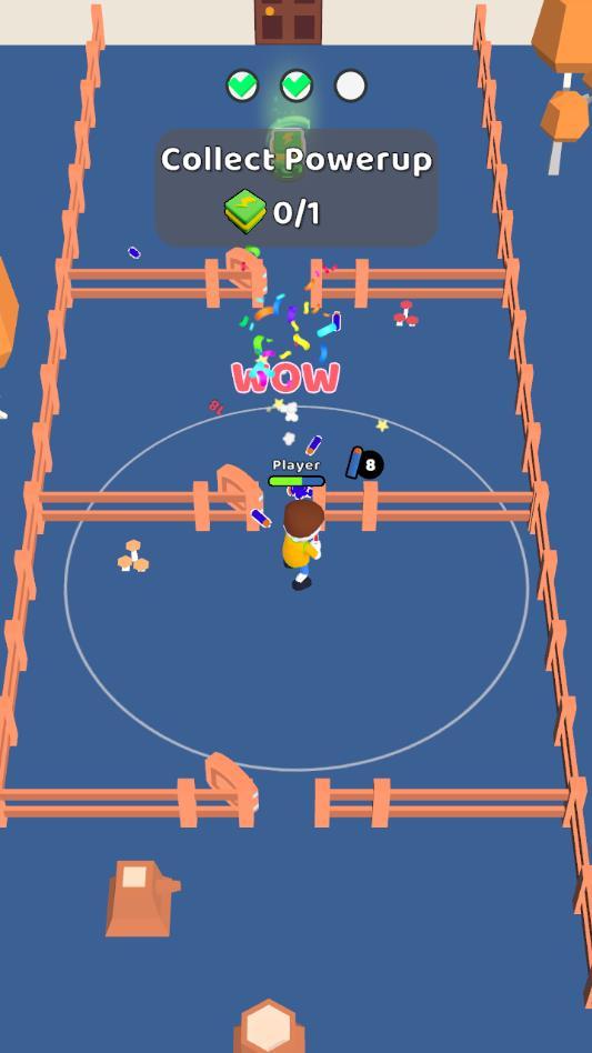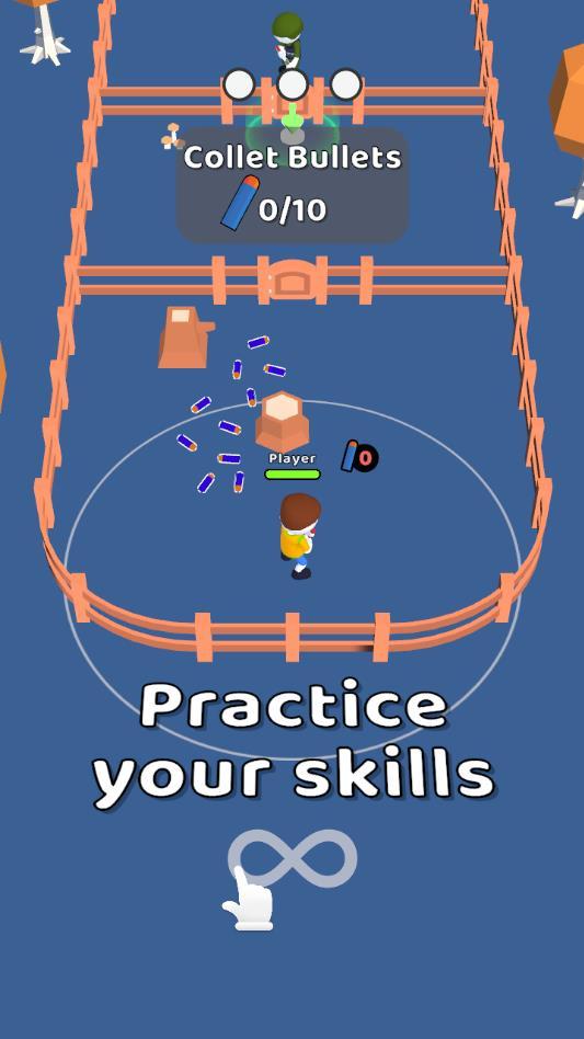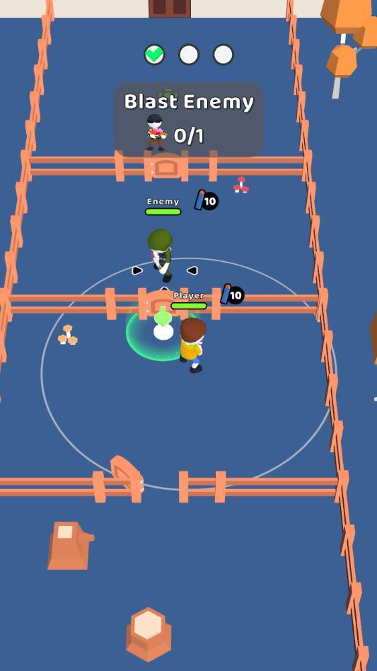不得不说这确实是一款很特别的双人solo对射小游戏,在这款最新的冲击波大逃杀中你将能够和另一个玩家在随机生成的场景之中开始一场对决,你将能够捡起场景中的子弹或者是一些其他的道具来使用,在一开始双方的枪里面都是没有子弹的,因此你还是需要捡才能够开枪,不断地奔跑来拾取子弹或者是一些其他的道具,你将获得这场双人对射的冠军。