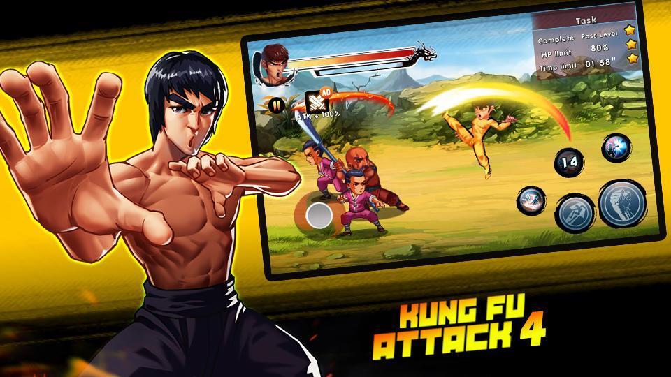 功夫激战4暗影传说之战是一款非常不错的功夫格斗类游戏,这款游戏中集合了各个国家的一些知名的格斗家,你将能够在这款游戏中看到李小龙、坂本龙马、施瓦辛格等等角色的出现,游戏的动作做得相当的出色,没一招一式的打击都充满了力量和真实的感受,在剧情上更是做得非常恶搞有趣,让你能够体验到最爆笑有趣的功夫名人之间的对话。
