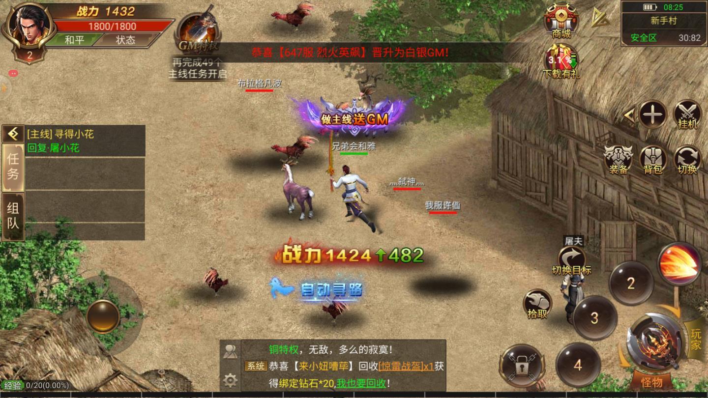 龙魂至尊是一款非常还原传奇玩法的角色扮演魔幻题材的冒险战斗游戏,非常华丽且炫酷的多样化技能特效,超级流畅的技能连招,轻松就可以进行boss的击杀,boss掉装的爆率是非常高的,让你轻松进行多样神兵利器的收集。