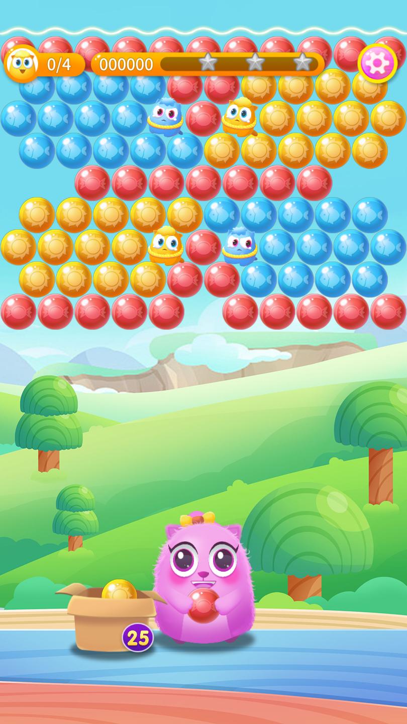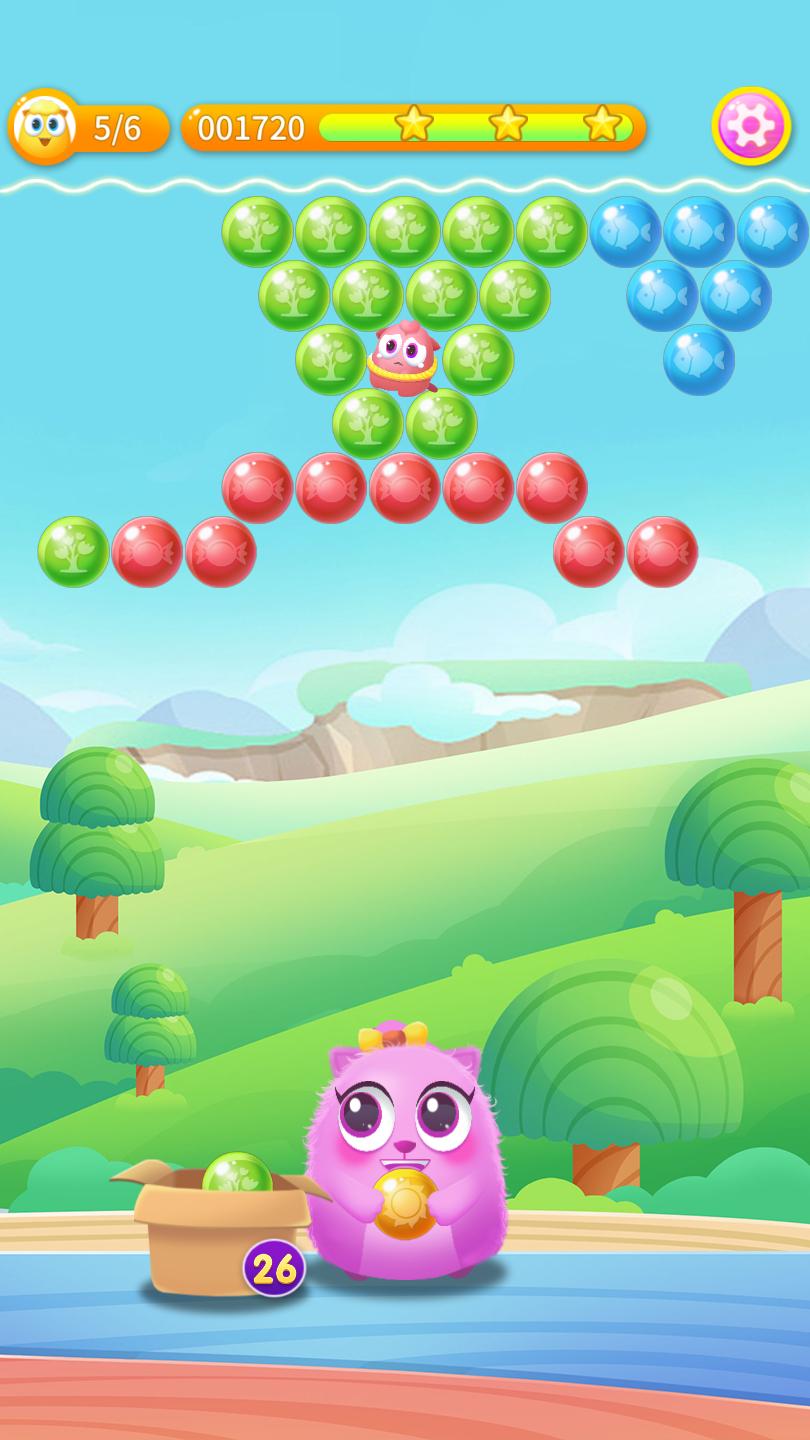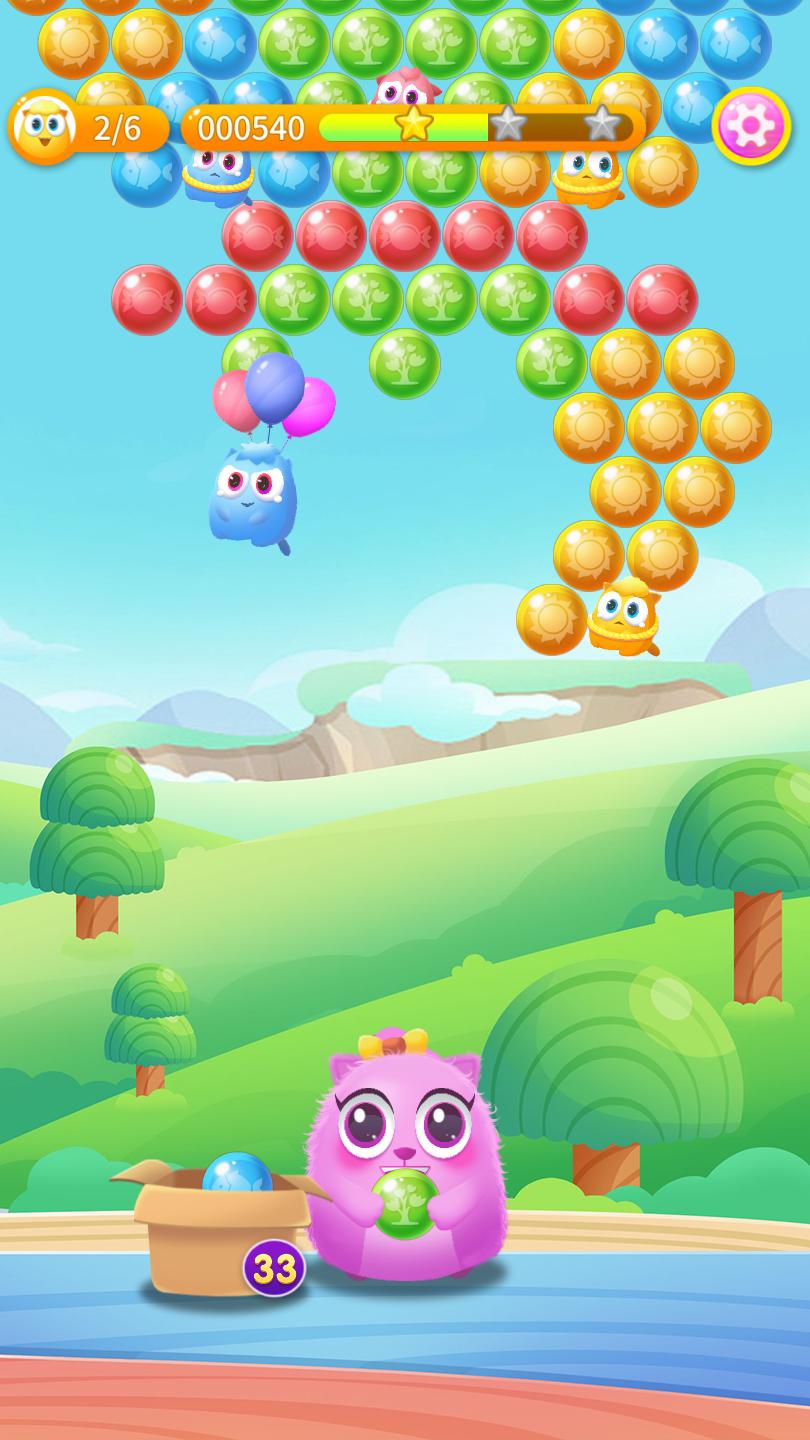 泡泡猫射击是一款画风十分可爱玩法很经典的泡泡龙游戏,小猫被困在泡泡里面去了,玩家需要通过射击消除泡泡,把小猫都解救出来,玩起来非常的有乐趣,呆萌的角色形象也能让人开怀,很适合在无聊的时候用来打发时间,而且后期的关卡更加有挑战度;