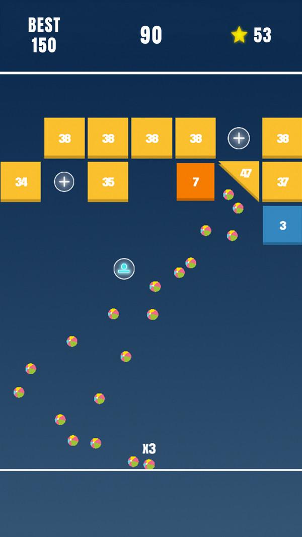 并击破所有砖的游戏. 触碰画面可以把球发射出去,拖拽住左右方向可移动平浆球拍