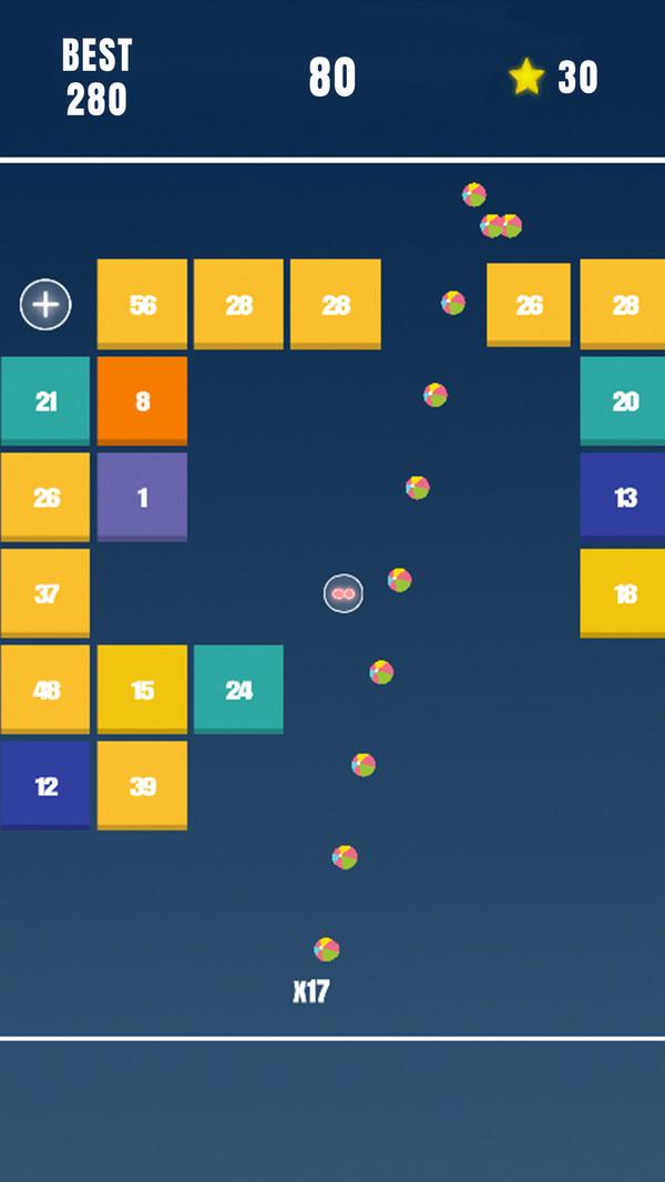 击破砖块是一款十分休闲解压的打砖块游戏,游戏的画面十分的简约,却能让玩家感受到十分纯粹的打砖块乐趣。玩家在游戏中需要发射小球来击打砖块,每一个砖块只有击打足够的次数才会破碎,因此玩家需要找好角度,尽可能让每次的发射都尽可能集中更多的砖块。十分经典的打砖块玩法,感兴趣的小伙伴赶紧来下载游戏体验吧。