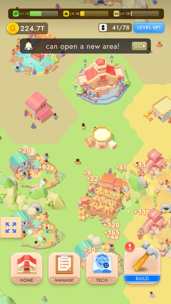 土地主大亨是一款养成经营类的模拟村庄经营游戏,游戏的画面十分的清爽简约,给玩家舒适的视觉观感。游戏的玩法也十分的有趣,玩家在游戏中将会从一个野人开局,然后经过慢慢的发展逐渐发展为一个颇具规模的村落,玩家需要用心经营这个村庄,建造房屋,合理分配资源,让村庄发展得蒸蒸日上并不断赚取更多的收益。游戏简单好玩还十分的休闲放松,赶紧下载游戏体验吧。