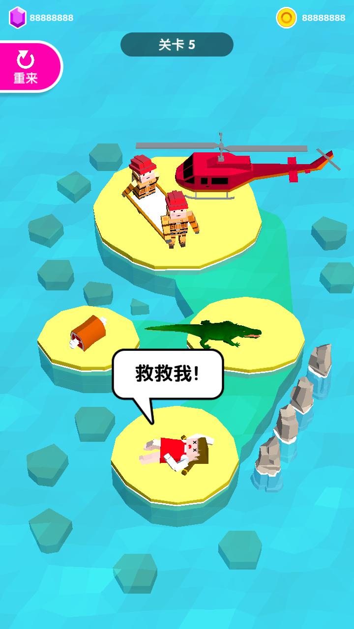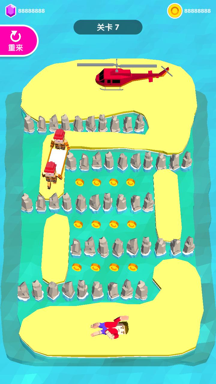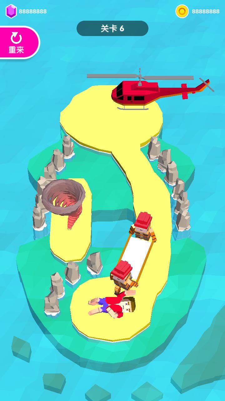 救救大叔是一款充满了趣味性的休闲小游戏,游戏画面清醒简约,搭配轻快的背景音乐,给玩家良好的游戏体验。这款游戏的玩法也是相当有趣,你在游戏中需要帮助救援队拯救一个无限作死的大叔。面对各种各样的险境,你需要充分动用自己聪明的头脑,想办法让大叔成功坐上救援直升机,你能帮助大叔成功获救吗?