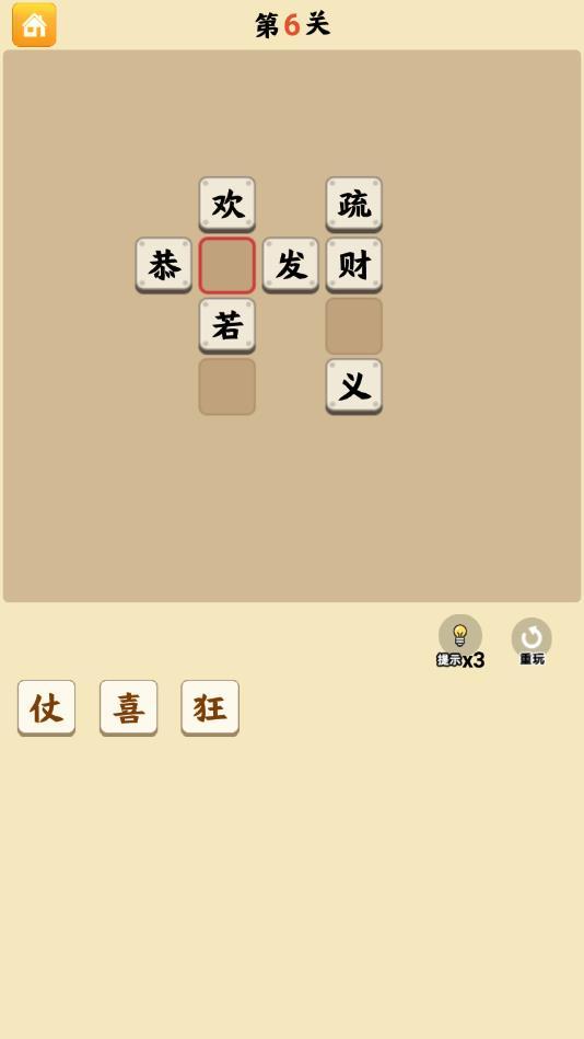 玩法非常简单,手指轻点即可进行操作,点击即可进行填字操作。