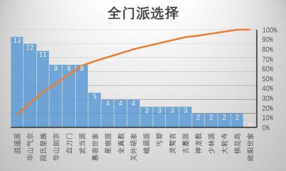 合计100名玩家,共20个可选门派,低于平均值50%(人数少于等于2人)的在此认为是冷门门派。