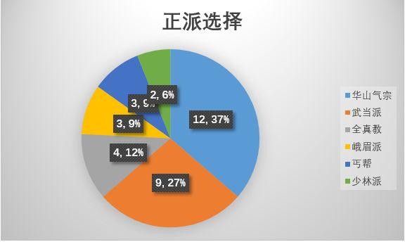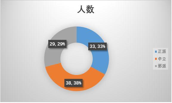 合计20个门派中,6正派、6邪派、8中立的情况下,可见总人数中立>正派>邪派;