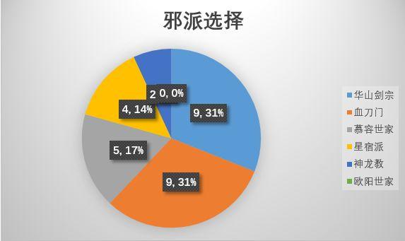剑宗和血刀在***中占比较高,对应冷门选择是:欧阳世家、神龙教。