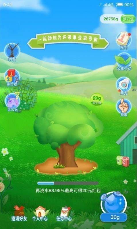 梦幻森林让你每天只需要花费少量的时间进行种树,在为地球做绿化的同时,也可以赚钱零花钱,玩法非常简单,只需要定时浇浇水、除除草就可以进行收益,浇水施肥可以让小树更快速的生长,而随着小树的长大,就可以进行金币以及红包的领取了。