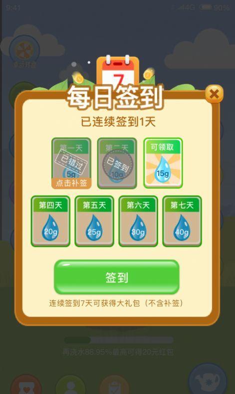整点领取:不同的时间段打开APP可领取相对应的水滴克数浇水获得梦幻值。