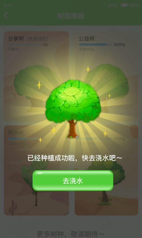树苗商城:选择不同的树苗浇水种树可获得相对于的梦幻值做公益活动。