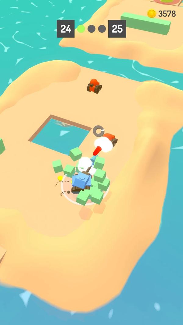 坦克交火是一款坦克对战玩法的休闲小游戏,游戏采用3D卡通风格,搭配上轻快的背景音乐,营造出十分休闲的游戏氛围。游戏的玩法十分的简单,玩家只需要控制坦克进行移动,当敌人出现在白圈范围后,坦克就会自动发起进攻,将敌人击败。将所有的敌人击败就能得到钥匙解锁下一个回合。一款简单好玩的休闲小游戏,赶紧下载游戏体验吧。