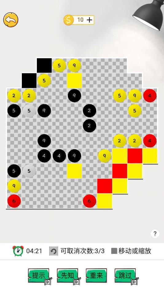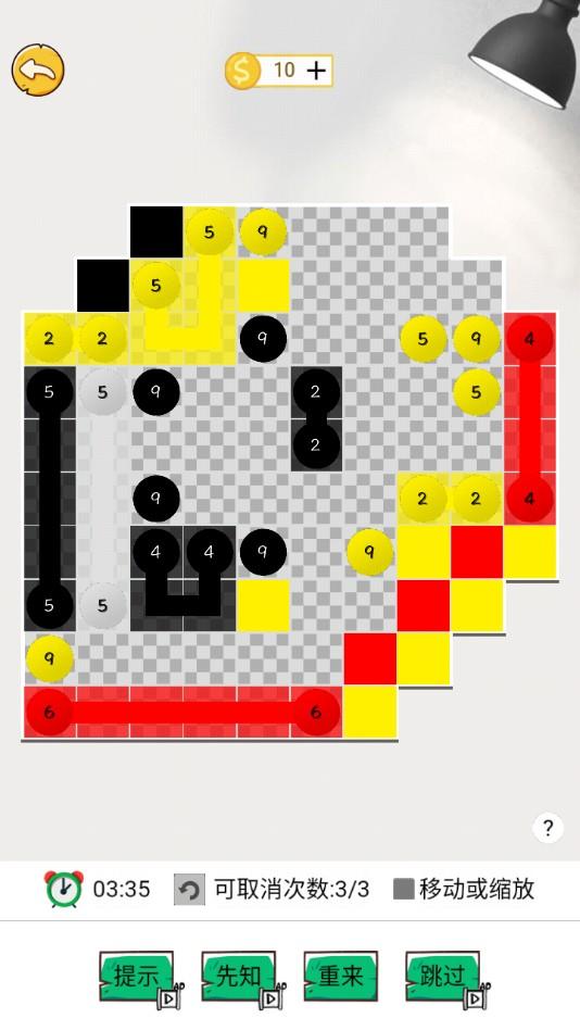 简洁的界面,游戏界面非常简单,画布就基本上占据了游戏的全部内容,然后是重来以及提示之类的按键;