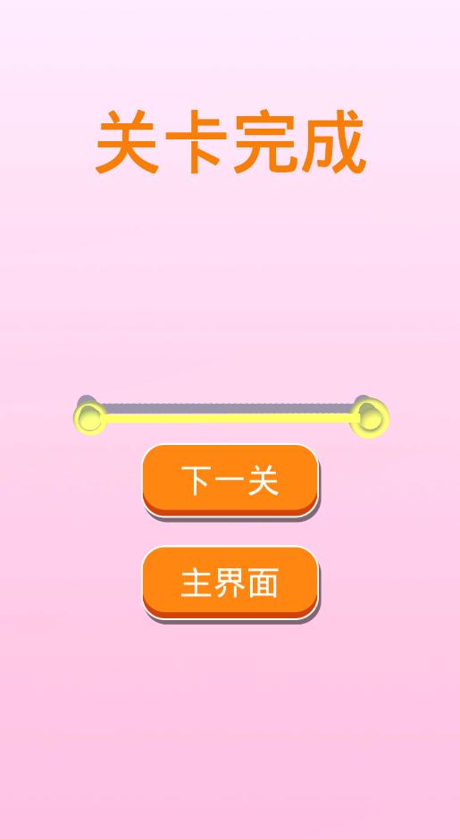 彩虹弹绳是一款闯关游戏,玩家进入游戏后就能够看见游戏见面上有一个新手提示,让玩家将线拉到另外的一头,然后闯关成功,当然这是因为是新手关的原因,当等到玩家熟练后难度也会升级,并且很多线会绕在一起