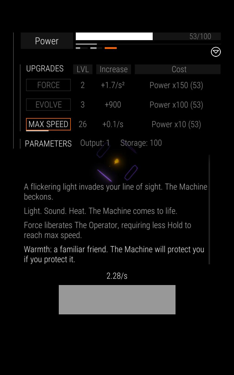 很奇特的一款游戏,主要玩法是放置养成,让手中的小火点收集足够的能量。