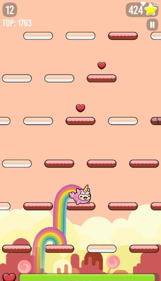 在收集爱心,星星和披萨的同时,在柔和的彩虹上向上涂鸦!
