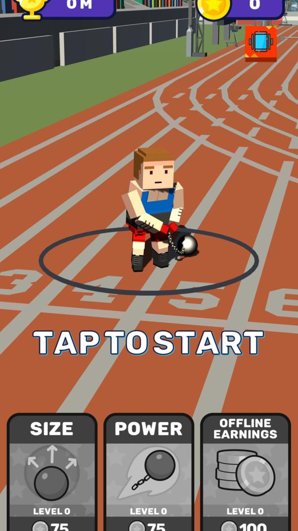点击屏幕即可开始游戏,控制铅球大师将铅球扔出,就能获取大量金币