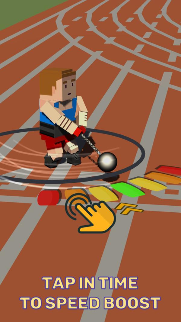 铅球运动员会在原地旋转三次,玩家必须在每一次力量值达到最大时点击屏幕才能将铅球扔得最远